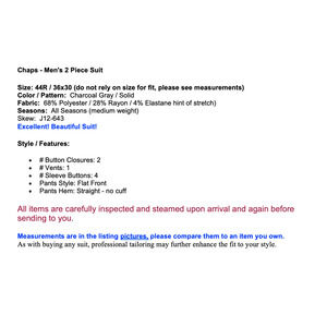 Size: 44R / 36x30 (do not rely on size for fit, please see measurements)