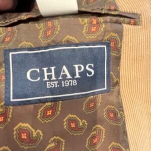 Chaps classic fit 46L camel corduroy cotton sportscoat features relaxed arm holes, regular body and traditional sleeve openings