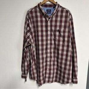 Chaps Stretch Men’s 4XB Red Plaid Button Front Shirt Cotton Blend Long Sleeve