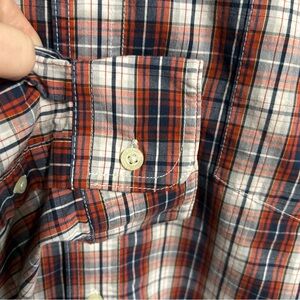 This is a nice looking men’s 4XB plaid button front shirt with embroidered logo on pocket. Button collar, long sleeve.
