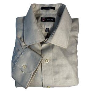 Chaps Men's Beige Long Sleeve Button-Up Shirt Size L 16-16.5 34/35 100% Cotton