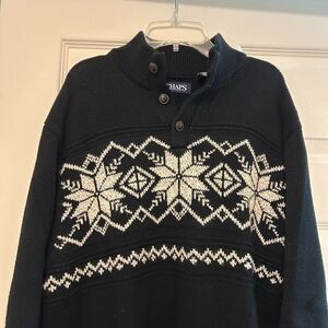 Chaps Men's Black and White Cotton Blend Snowflake Sweater Size L