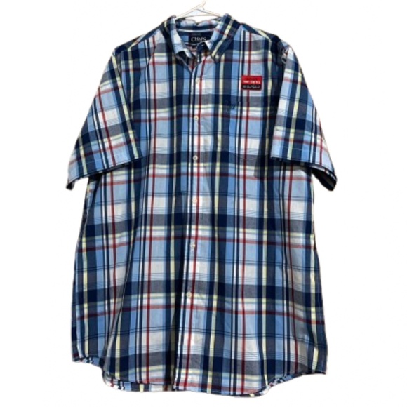 Chaps Men’s Blue Multi Plaid Temp Control Button Front Short Sleeve Shirt Sz-XL