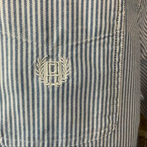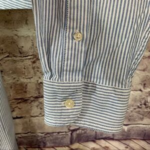 Chaps Mens Blue Stripe Oxford Button Long Sleeve Shirt