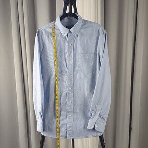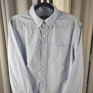Chaps Men’s Blue, White Cotton Blend Pattern Button Down Dress Shirt Size Large