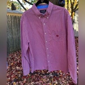 Chaps Men’s Button Down Long Sleeve Shirt (Red & White Gingham)