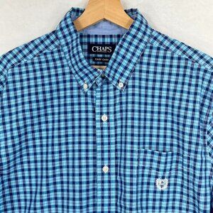Chaps Men's Button Down Shirt Checked Short Sleeve Preppy Academia Grandpa
