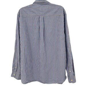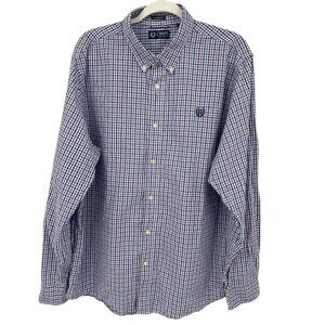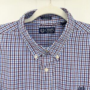 Chaps Mens Button Down Shirt Custom Fit Blue Brown Plaid Long Sleeve Size XL