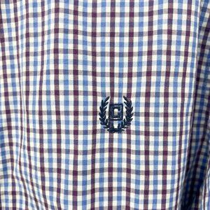 Keywords: Chaps, Mens shirt, Button down shirt, Long sleeve shirt, Plaid shirt, Blue plaid, Brown plaid, Custom fit, Casual shirt, Business casual, Men's fashion, Collared shirt, Dress shirt