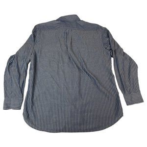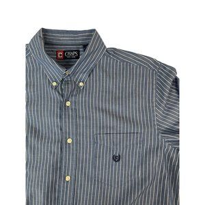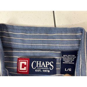 Chaps Men's Button Down Shirt in large size, featuring blue and white stripes. Made from a blend of cotton and polyester, this stylish collared shirt is perfect for any occasion.