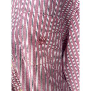 Chaps Mens Button Down Stretch Oxford Long Sleeve Pink Striped Shirt XXL