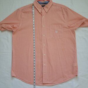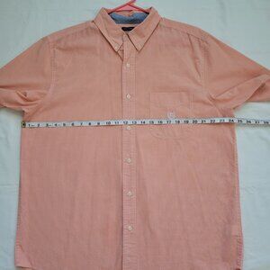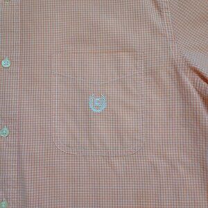 Chaps Men's Button-Down Short Sleeve Shirt Orange Checkered Easy Care Size L