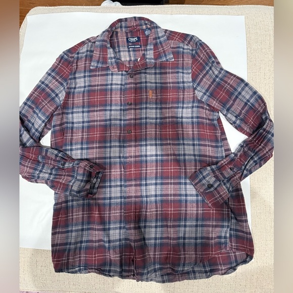 Chaps Men's Casual Plaid Shirt - Maroon , Grey and Blue