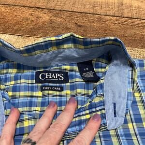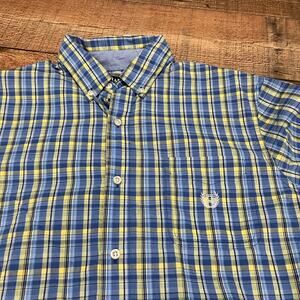 Chaps Men's Classic Blue Yellow Plaid Button Down Short Sleeve Shirt Sz L Preppy