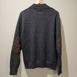 100% cotton. Gray knit sweater with brown suede elbow patches and suede lined V neck button column. Minimal signs of wear. Size XL. Compare measurements to something similar to ensure fit. Ships clean & fast!!