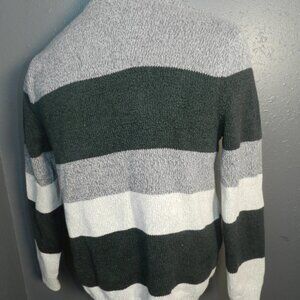 Chaps Mens Dark Green Grey And White Long Sleeve Stripped Sweater Size Medium