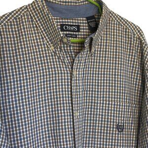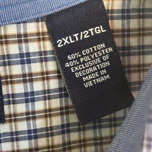 Chaps Mens Easy Care Button-Up Shirt 2XL Tall Plaid Cotton Blend Brown & Blue