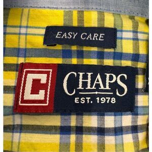 Chaps Mens Easy Care Yellow Plaid Shirt, Size XXL