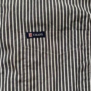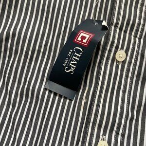 Chaps Mens Gray/White Striped Easy Care Button-Up Shirt L
