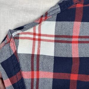 Gently used red, white, and navy plaid oxford cloth shirt. Please check the measurements so a return won’t be necessary. MWF shipping. Your satisfaction is important to me!