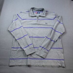 Keywords: Chaps, Mens, Gray, Striped, Long Sleeve, 1/4 Zip, Pullover, Shirt, Casual, Comfortable, Large, Purple Stripes
