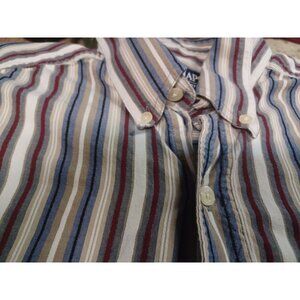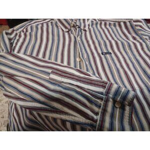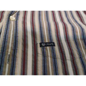 Chaps Men's Long Sleeve Button-Up Shirt Medium Stripes Red Tan White Grey Black