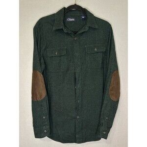 Chaps Mens Med Button Down Long Sleeve Flannel Shirt Elbow Patches Double Pocket