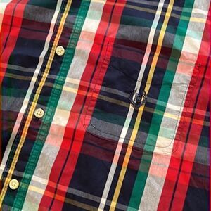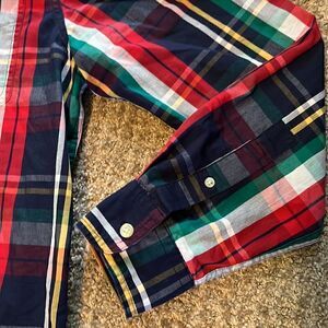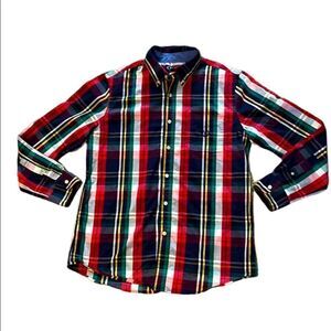 Chaps Men’s Medium Classic Navy Red Green Plaid Long Sleeve Button Down Shirt