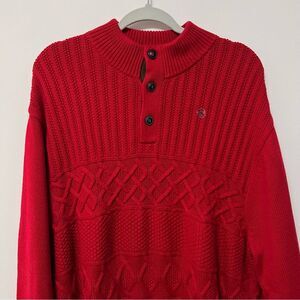 Chaps Mens NWT Fisherman's Sweater Size XXL Red Cotton Cable Button Up Mock Neck
