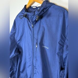 Chaps Men’s Navy Blue Windbreaker Jacket Hiking Gorpcore XL Hooded. Excellent condition