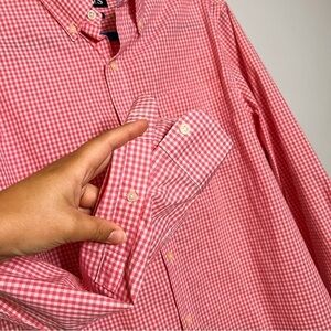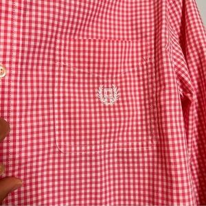 Chaps Men’s Pink Gingham Easy Care Button Up Dress Shirt Medium