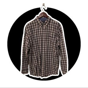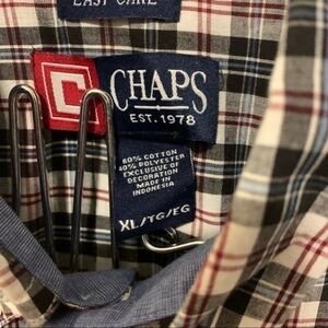 Chaps Men’s Plaid Button Down Shirt Black, Red, and Blue Plaid Size Extra Large