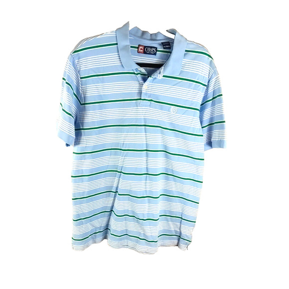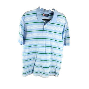 Chaps Mens Polo Shirt Blue Green White Stripe Size X Large