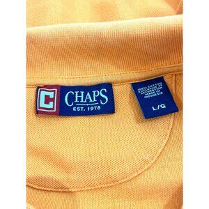 0558B- Chaps men’s polo shirt, vintage, L, orange, 100% cotton, made in Indonesia, logo at left chest, 2-button, Henley collar, slits at hemline.