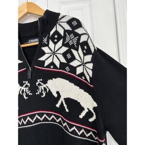 Chaps 1/4 zip black men’s sweater with snow flakes and fighting deer. Extra large