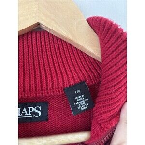 Chaps Men’s Red Quarter Zip Sweater Moose Fair Isle Design Size Large Holiday