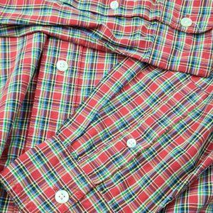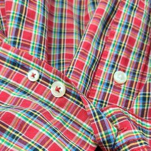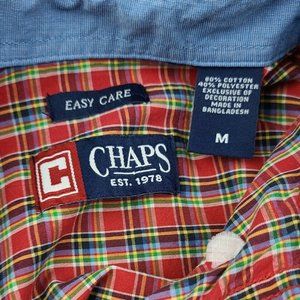 Chaps Men's SZ:M Red Blue Green Plaid Button Down Shirt Logo Soft Vibrant 00212. Item is in great condition and has been worn very lightly throughout it's lifetime. Item has a few loose threads around the buttons. No other flaws or issues found upon inspection.