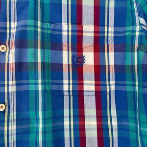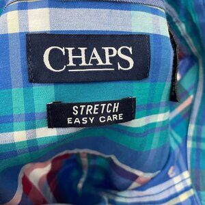 Chaps Men's Shirt Button Down Size XL Blue Green Plaid Easy Care Long Sleeve