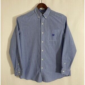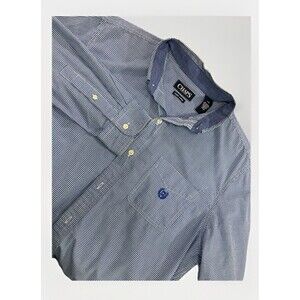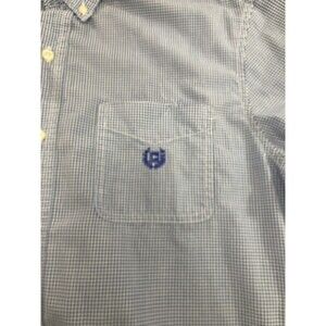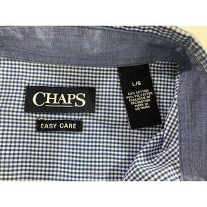 Chaps Men’s Shirt L Blue Gingham Plaid Button Up Easy Care Casual Dress Preppy