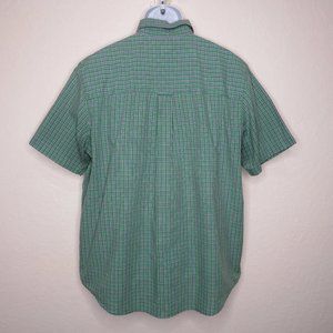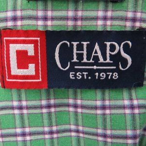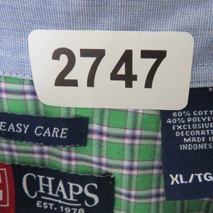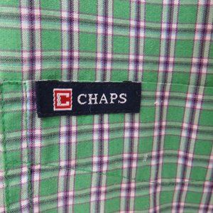 Chaps* Men's Short Sleeve Button Down Curved Hem Chest Pocket Plaid Shirt~ XL