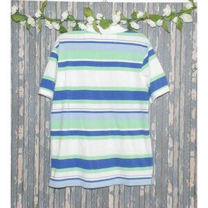 Chaps Mens Short Sleeve Polo Shirt Size L White Blue & Green Striped Preppy Golf