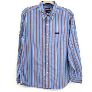 Chaps Mens Size M Blue Striped Button Down Shirt Long Sleeve American Classic