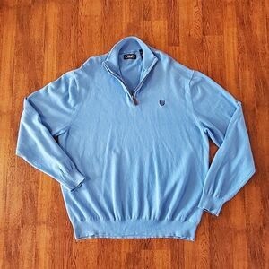 Chaps Mens Sz XL Quarter Zip Pullover Sweater Cotton Cashmere Blend Blue