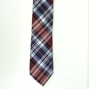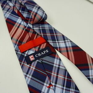 Chaps Mens Tie 100% Silk Plaid Blue Red Classic Preppy