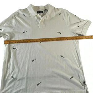 Item: Chaps Mens White Size XL Short Sleeve Collared Polo Shirt Fishbone Print