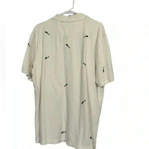 Chaps Mens White Size XL Short Sleeve Collared Polo Shirt Fishbone Print