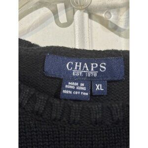 Chaps Mens XL Black Sweater Regal Lion Crest Embroidery 100% Cotton Coat of Arms