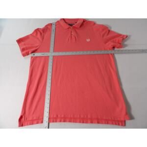 Chaps Mens XL Polo Tee Shirt Coral Bright Orange Short Sleeves Casual- Gently worn in good condition. No rips tears or stains. Pretty Color, nice and bright, no wash wear. Ideal for golf, vacation, resort wear or just casual!