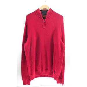 Chaps Mens XL Pullover 1/4 Zip Heavy Knit Sweater‎ Red