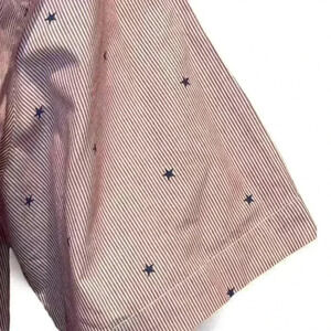 The Chaps Men's XL Pink Striped Button-Up Shirt is perfect for casual outings and relaxed gatherings. Made from 100% cotton, this short-sleeve shirt offers a comfortable, regular fit. The button-down collar and front chest pocket add a touch of classic style, while the collared neckline ensures a polished look. The playful striped pattern with a stars theme makes it a standout piece in any wardrobe. Ideal for weekend brunches, casual Fridays, or a day out with friends. Pre-owned but in like-new condition.